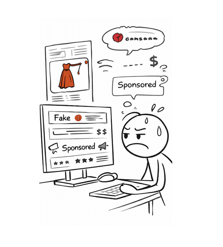 "Online shoppers spend 15–20 minutes per product reading reviews and comparing options, yet nearly 9 out of 10 still experience buyer’s remorse. Fake reviews, inconsistent information, and unclear quality signals continue to erode trust."